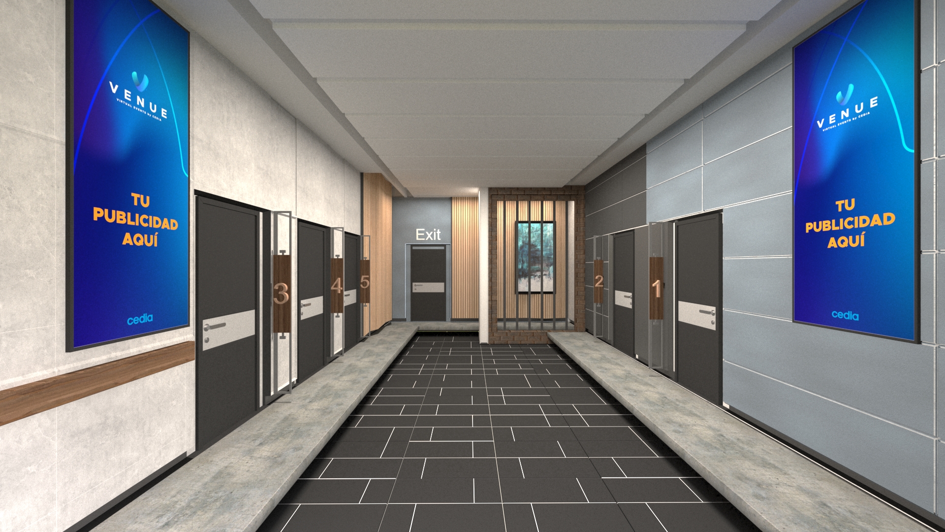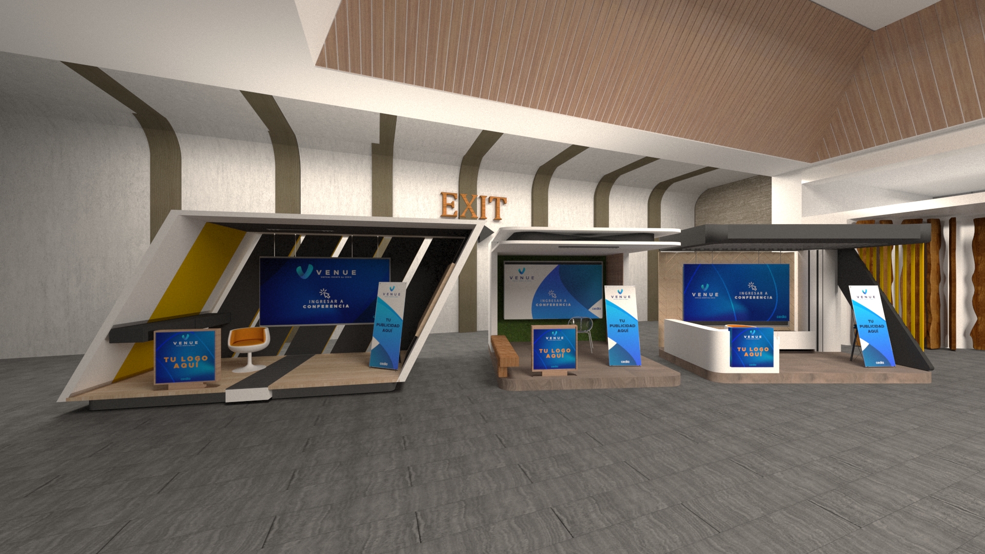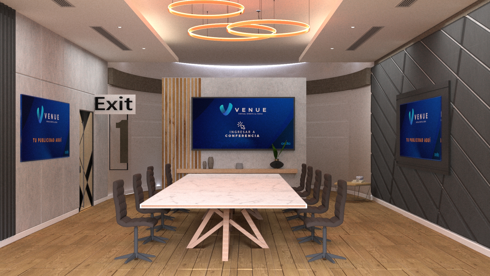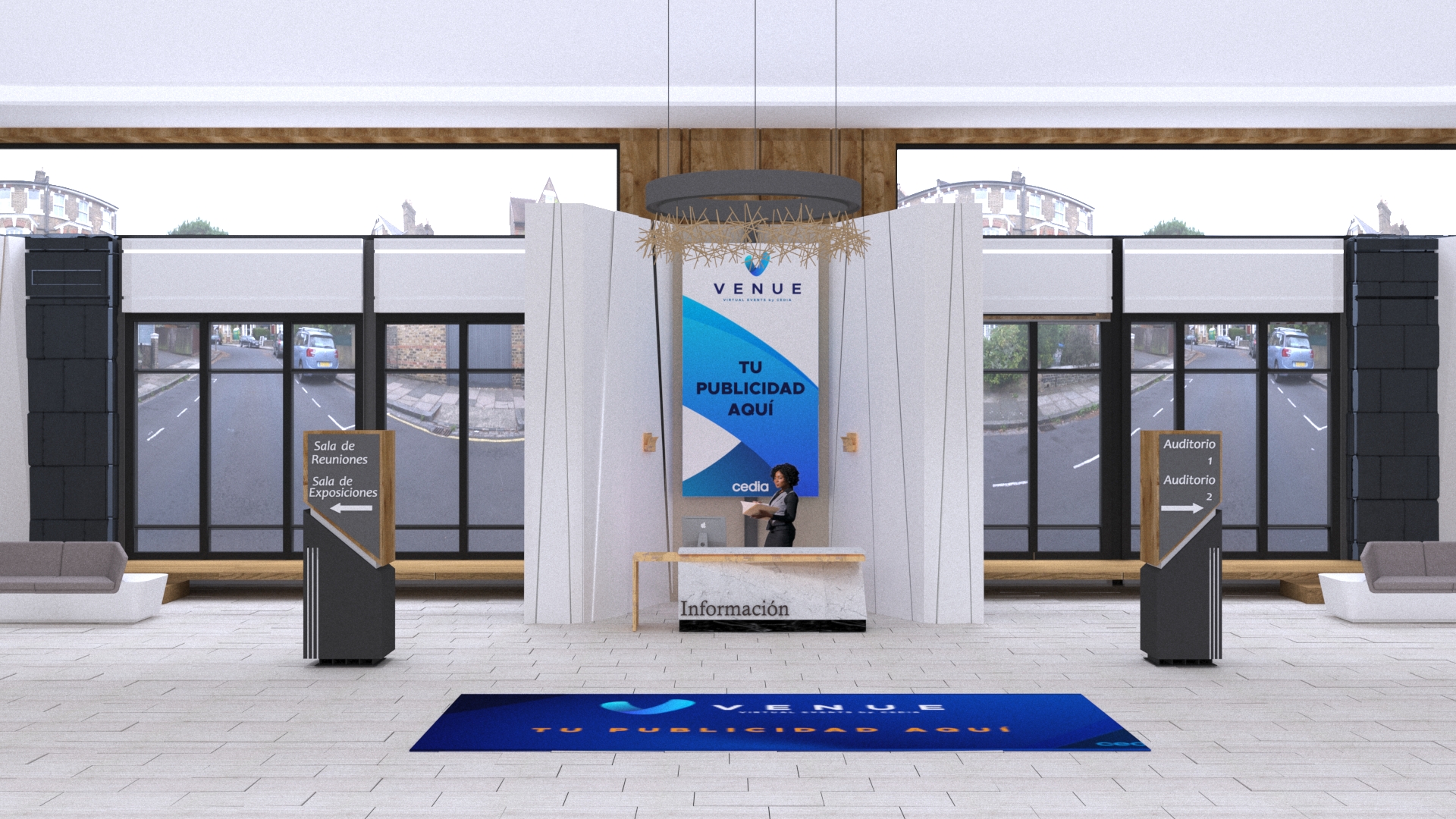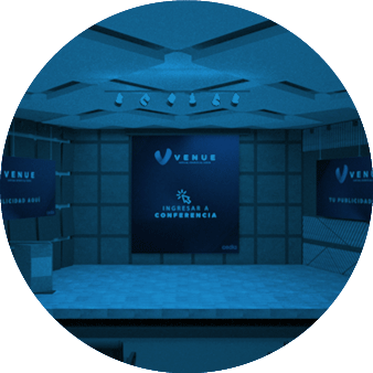 Venue es una plataforma virtual desarrollada con tecnología 3D, consta de múltiples escenarios, los mismos que permiten generar una experiencia interactiva. Su diseño brinda al usuario una gran variedad de funcionalidades, las cuales promueven la interactividad entre los asistentes y expositores.